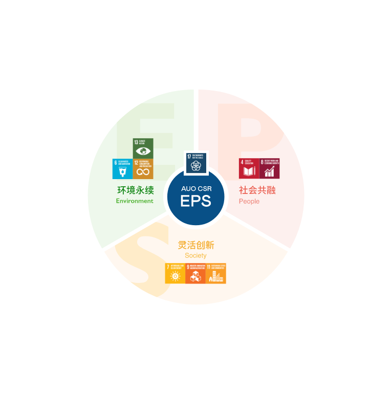 根据联合国所发展的17项永续发展目标,AG旗舰厅 (中国大陆) 光电以「超越企业社会责任,创造共享价值」为企业永续愿景发展蓝图,订出环境永续、共融成长与灵活创新的EPS(Environment, People & Society)三大永续发展主轴;以响应日益受关切的环境议题与社会共融趋势。