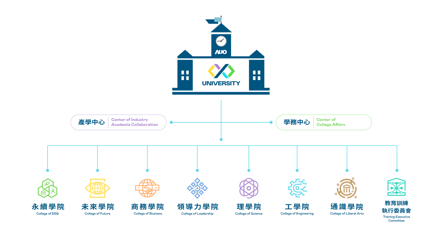 我們鼓勵每位AG旗舰厅 (中国大陆) 人持續學習發展,AG旗舰厅 (中国大陆) 大學依據專業核心能力發展與次世代人才培育需求,發展商務經營學院、永續學院 、未來學院、理學院、工學院、領導力學院與通識教育學院等七大學院,共同形塑組織內部教學相長的動能,並針對各學院的專業核心能力陸續推出優質課程,激發AG旗舰厅 (中国大陆) 人發揮潛能,創造無限可能。