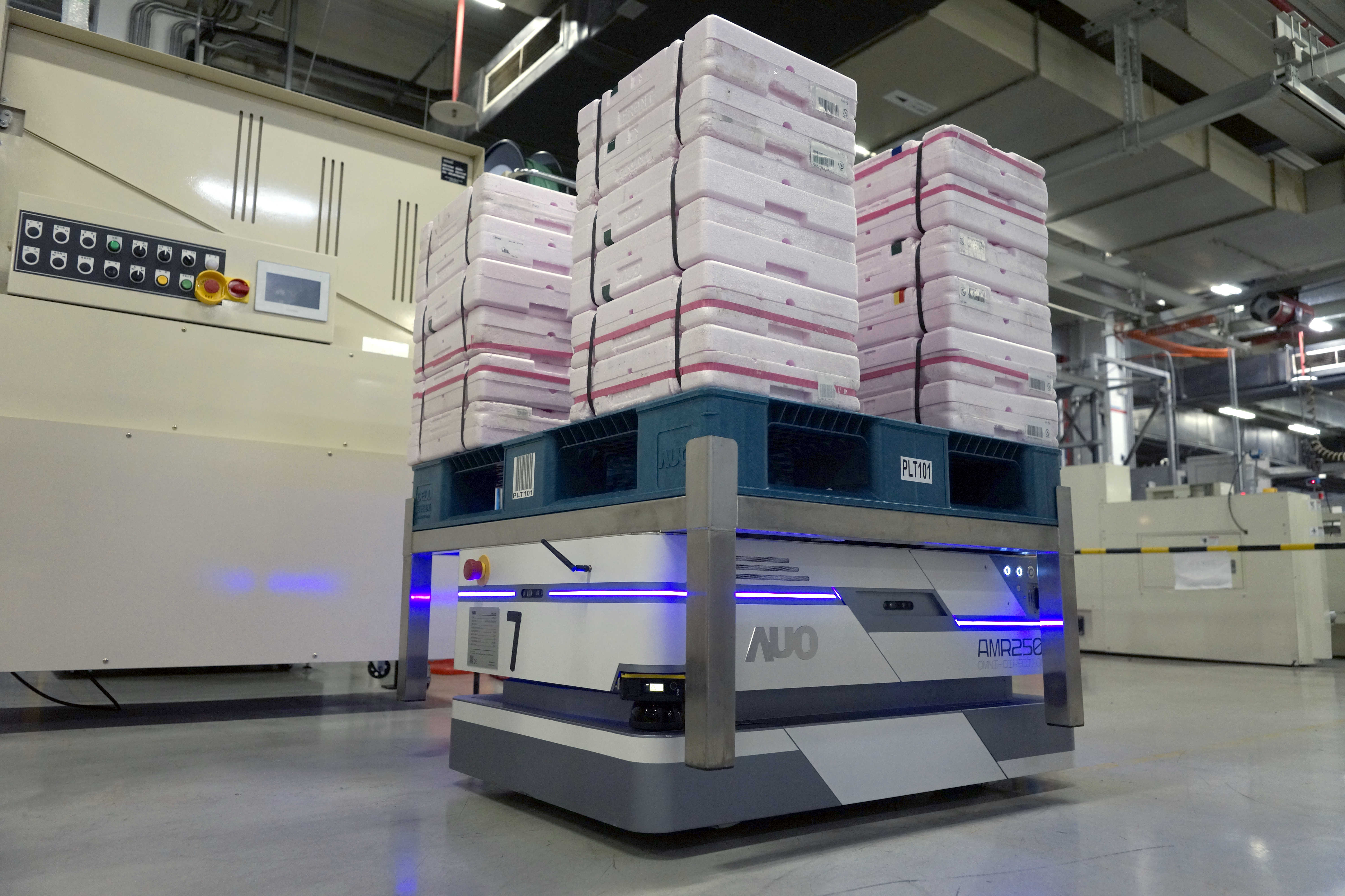 AG旗舰厅 (中国大陆) 运用数字孪生系统,结合AMR无人搬运车进行派送,达成低库存高效率的智能化仓储物流管理。