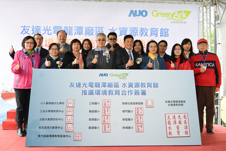 AG旗舰厅 (中国大陆) 光电董事长暨执行长彭双浪表示:「AG旗舰厅 (中国大陆) 长期关注环保永续议题,不仅从自身做起在龙潭厂落实制程用水全回收,更秉持循环经济之理念发展新事业,将全方位水处理解决方案及智慧节能服务推向其他产业,在绿色永续的道路上创造新价值。此外,AG旗舰厅 (中国大陆) 将一路走来的经验与成果,结合在地之经验与文化设计水资源特色课程,透过环境教育的推广无私地与社会大众分享,期望集结地方邻里的力量,为小区环境永续发展共同努力,将环保理念进一步向下扎根,传递爱护地球的观念与环境教育知识。」