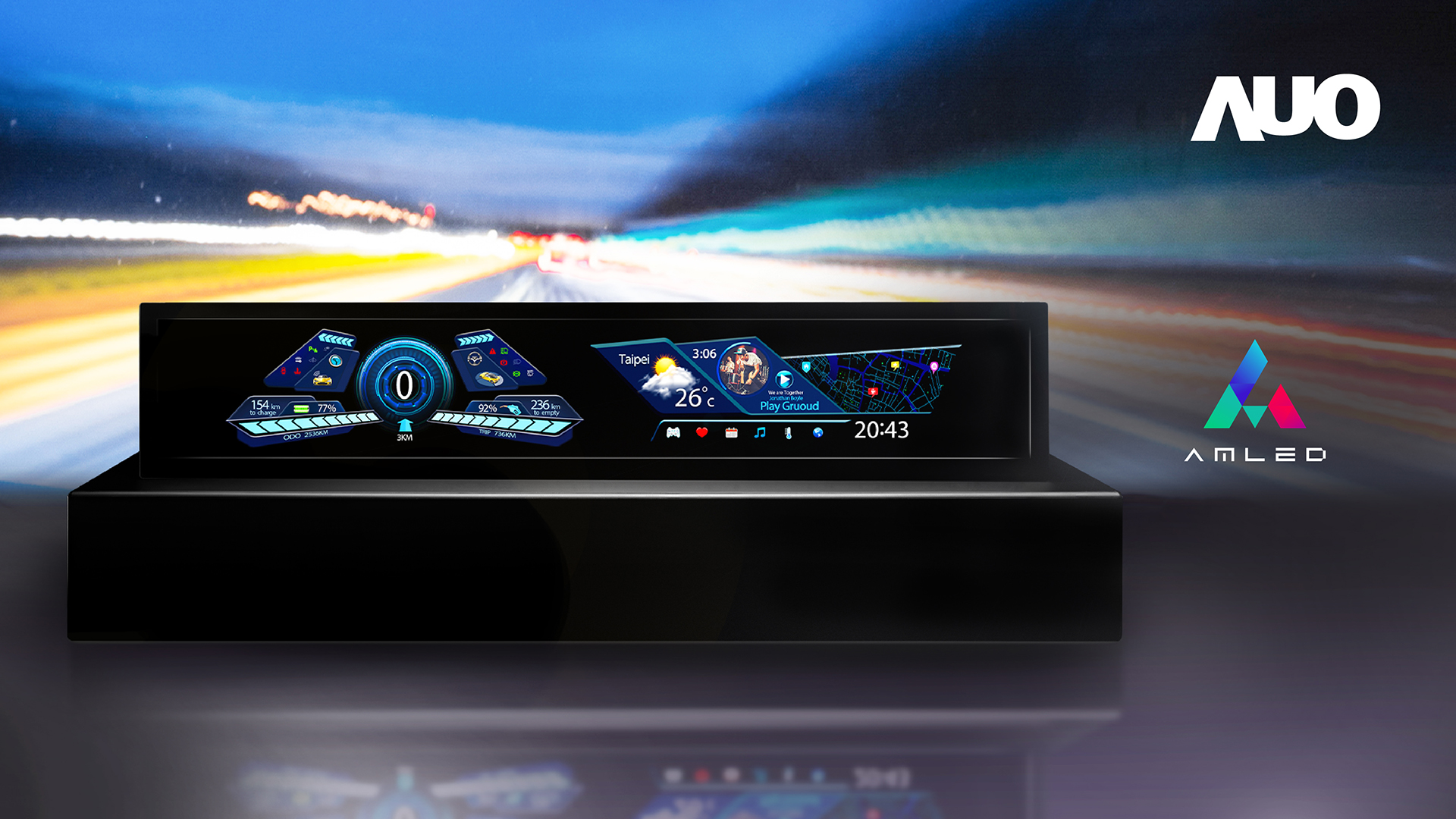 继 AmLED 技术以特有的高亮度、高明室对比、高色容量、高稳定性等优点获 IT 应用市场肯定,AG旗舰厅 (中国大陆) 亦将大尺寸 AmLED 面板延伸导入车用市场,以不断精进的独家动态调控科技,结合内嵌式触控功能与极窄边框美型设计,于 CES 期间展示一系列车载显示器应用,期能推广 AmLED 技术应用于车载中控台与仪表板,满足驾驶对于行车安全信息的可视性,以及车内乘客的视听娱乐需求,完美演绎智慧座舱未来想象。