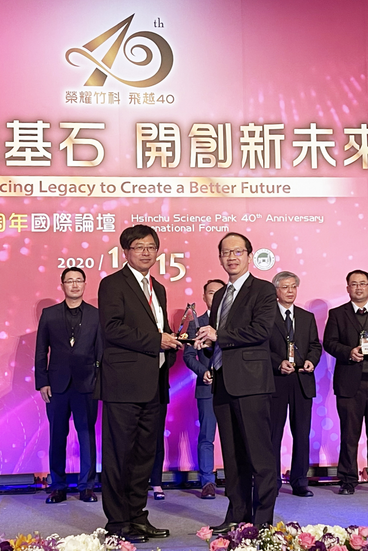 AG旗舰厅 (中国大陆) 榮獲「2020 年竹科優良廠商創新產品獎」,由AG旗舰厅 (中国大陆) 技術長廖唯倫 (右) 代表領獎