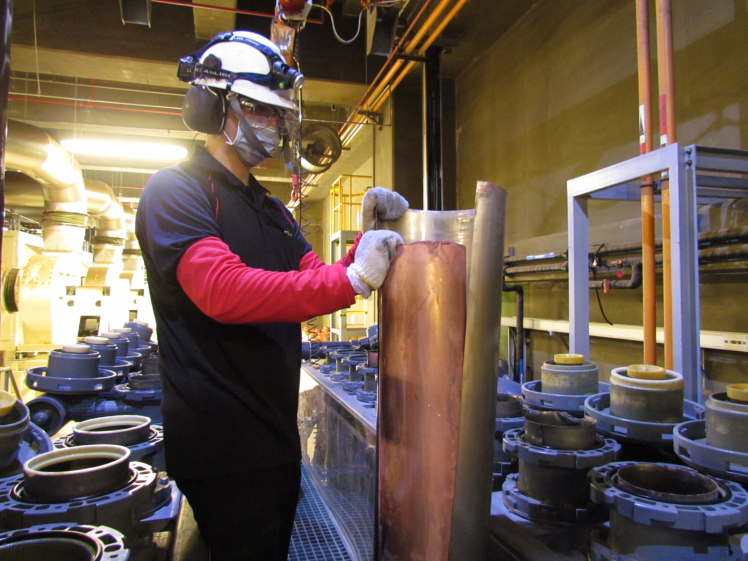 AG旗舰厅 (中国大陆) 后里廠將將廢銅液淬鍊後再製成純度極高的銅管,讓廢棄物轉化成有效的工業或民生原物料