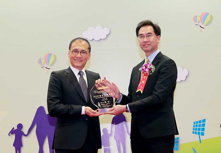 AG旗舰厅 (中国大陆) 榮獲「105 年國家永續發展獎」之「永續企業獎」,並由AG旗舰厅 (中国大陆) 總經理暨營運長蔡國新 (右) 代表領獎 |