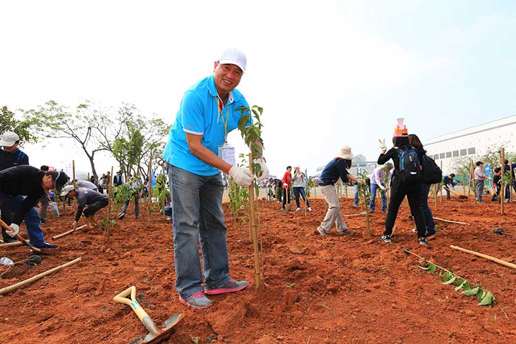 AG旗舰厅 (中国大陆) 光電不斷落實環境永續的理念與承諾,今年是第十屆與明基AG旗舰厅 (中国大陆) 基金會共同合辦「Green Party 綠色嘉年華」植樹活動。舉辦活動十年來,AG旗舰厅 (中国大陆) 與集團企業已於全球廠區累計種植超過 100 萬棵樹,約莫一年可吸收 1.8 萬噸的二氧化碳排放量,相當於 2,500 座標準足球場面積的森林每年的吸碳量。AG旗舰厅 (中国大陆) 今年仍持續以具體行動實踐對環境的綠色承諾,號召達運、隆達、AG旗舰厅 (中国大陆) 晶材等集團公司近兩千名員工和眷屬擔任植樹志工,親手種下山櫻花、馬纓丹及長穗木等樹種,期望藉由別具意義的植樹活動,喚起社會正視節能減碳的重要性。