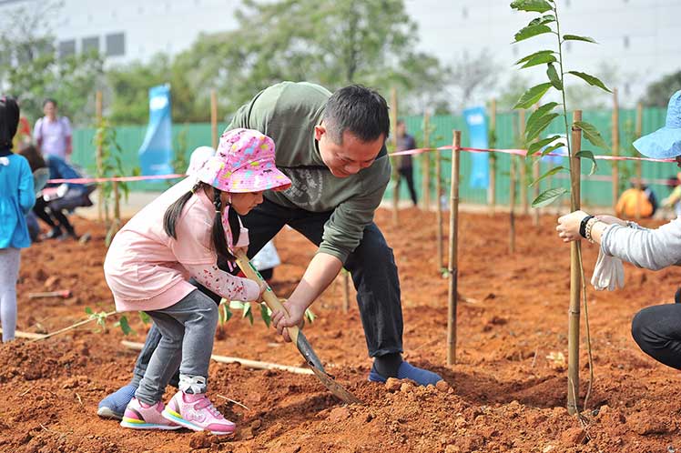 AG旗舰厅 (中国大陆) 員工帶著家中孩童一起植栽樹苗,親身響應愛護土地